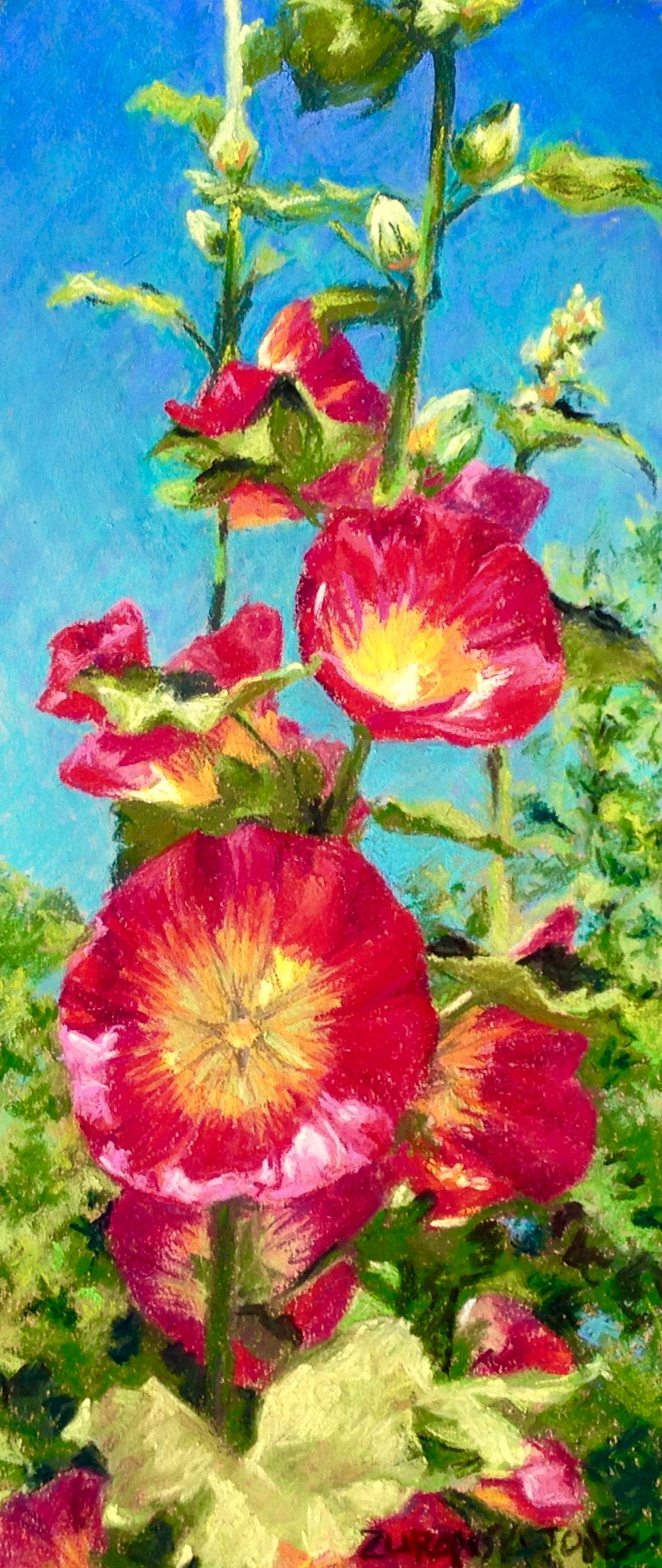 Hollyhocks in Bright Summer Sun